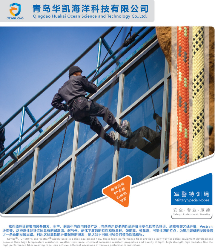 該繩纜采用先進(jìn)編織和后整理技術(shù)制造,質(zhì)地柔軟、便于操作、強(qiáng)度高、耐磨損、耐老化,適用于各種訓(xùn)練、實(shí)戰(zhàn)等復(fù)雜環(huán)境,具有速降、救援、牽拉等多種用途。