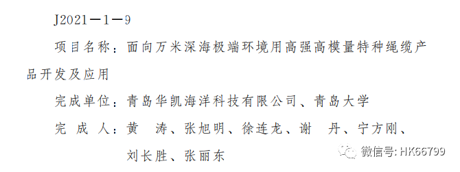12月8日上午,青島市科技創(chuàng)新大會(huì)在市級(jí)機(jī)關(guān)會(huì)議中心召開(kāi),對(duì)獲得2021年度市科學(xué)技術(shù)獎(jiǎng)的項(xiàng)目和人員進(jìn)行表彰獎(jiǎng)勵(lì)。青島華凱海洋科技有限公司“面向萬(wàn)米深海極端環(huán)境用高強(qiáng)高模量特種繩纜產(chǎn)品開(kāi)發(fā)及應(yīng)用”項(xiàng)目榮獲青島市科學(xué)技術(shù)進(jìn)步一等獎(jiǎng)。